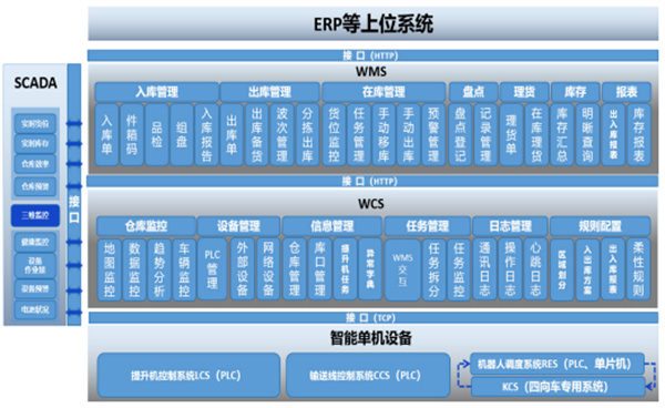 智能仓储WCS基于无线数据通信及软件开发技术,内置智能优化算法及成熟解决方案、设备集成组件的集成配置化平台,通过不断完善上位管理系统的架构、数据交互与存储、通信等功能模块和客制化设计服务,从实际业务或客户需求出发,为客户提供包含智能输送、智能拣选、智能搬运与存储为一体的自动化物流解决方案,实现智能化物流调度与作业。例如,在智能仓储穿梭车体系中,通过智能仓储WCS的设计,可实现仓内单元物料的订单任务处理及出入库作业,包括智能调度与存储作业、货位优化与调拨、穿梭车的路径规划、无线数据通信与信息交互、设备状态监控与在线维护、故障预警等功能,实现仓内单元物料的智能化物流作业与优化管控。