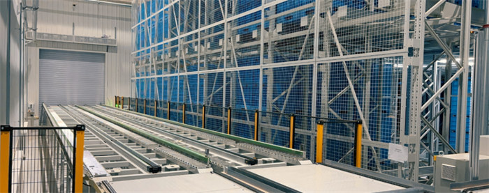 智慧成品库是一套高度集成且紧密协同的智能化系统,涵盖24米超高立体仓储系统、堆垛机系统、出入库输送系统、机器人码垛系统、自动分拣出库系统、智慧物流管理系统、仓储区域视频监控系统、语音对讲及安全提醒系统以及温湿度监控系统等多个关键组成部分。